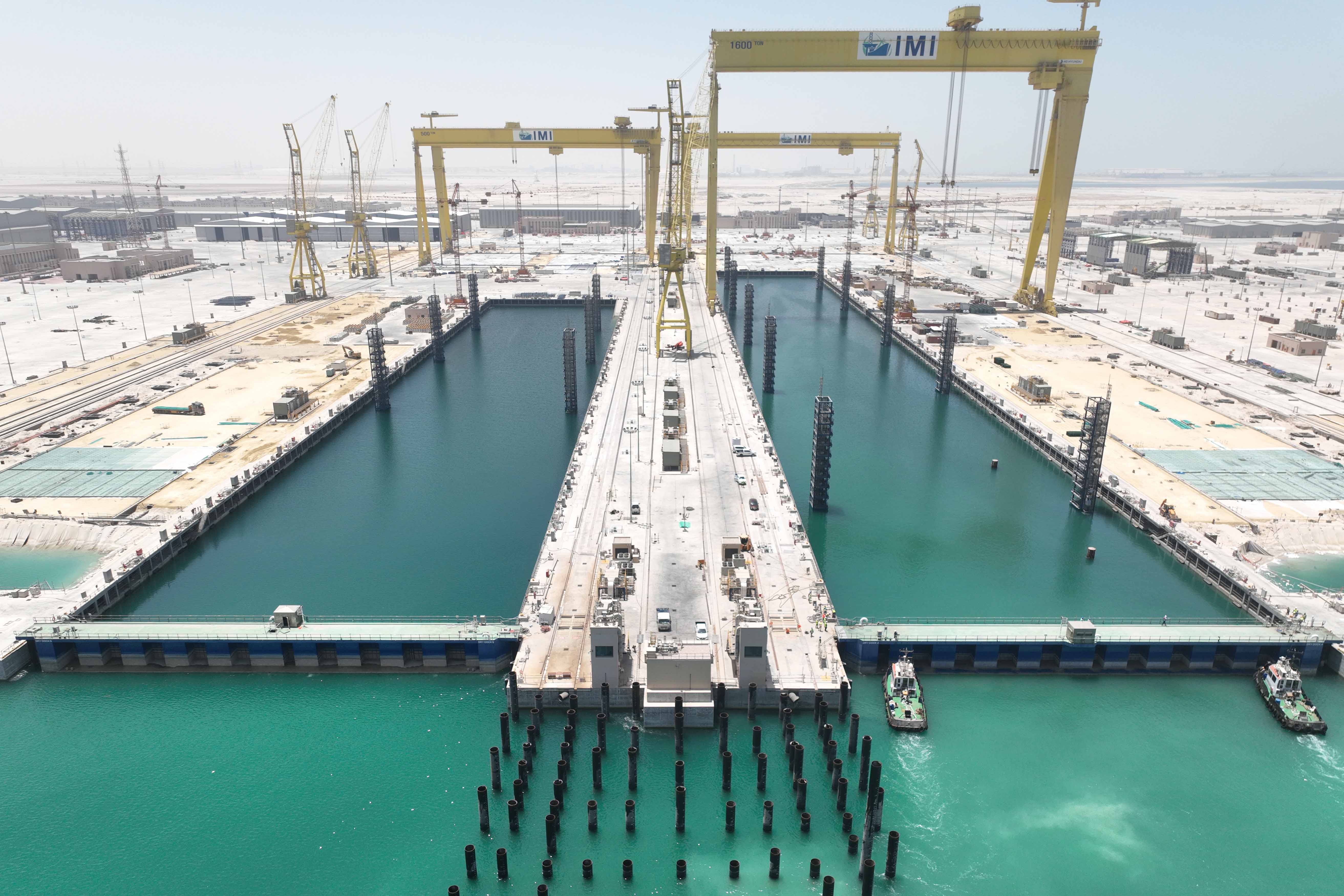 當?shù)貢r間5月19日,山東電建公司承建的沙特國王港項目5號干船塢塢門A、B面兩次順利通過高低潮位滲漏量測試。這一里程碑目標的實現(xiàn),標志著項目全部干船塢塢門安裝及驗收圓滿收官。 沙特國王港項目是沙特“2030愿景”的重要組成部分,主要從事船舶、鉆井平臺制造、維護、修理及超級油輪的檢修制造工作。該項目4號和5號干船塢是船舶建造、維修、保養(yǎng)的核心建筑,灌泄水體積高達百萬噸級。干船塢塢門均采用對稱設(shè)計的浮箱式塢門,長76.5米、寬6米、高12.5米,重達2600余噸,塢門A、B兩個面均設(shè)有密封橡膠,可任意換面使用。同時,該浮箱式塢門的密封形式設(shè)計為高度僅有10mm的國際罕見的“小耳朵型”,相比國內(nèi)外普遍采用的“Ω”形密封橡膠,后者具有更大的壓縮量及容錯量,對土建結(jié)構(gòu)施工及密封橡膠施工精度要求極高,塢門密封鋼面及橡膠的軸線偏差不能超過100米/±1mm,平整度不能超過±0.5mm/3m。 隨著干船塢塢門安裝工作全部結(jié)束,沙特國王港項目海工工程已完成全部關(guān)鍵技術(shù)節(jié)點。截至目前,項目EPC進度已達96.76%。項目建成后,不僅擁有全球最大的升船機系統(tǒng)、最長的碼頭以及全球前列的聯(lián)合吊裝能力,同時將以其宏大的規(guī)模、先進的設(shè)施、強大的產(chǎn)能,成為世界上規(guī)模最大的“超級船廠”,對推動沙特經(jīng)濟多元化、增加生產(chǎn)總值、提升對外貿(mào)易水平、加強產(chǎn)業(yè)協(xié)同效應(yīng)、創(chuàng)造更多就業(yè)機會等產(chǎn)生積極影響。 |