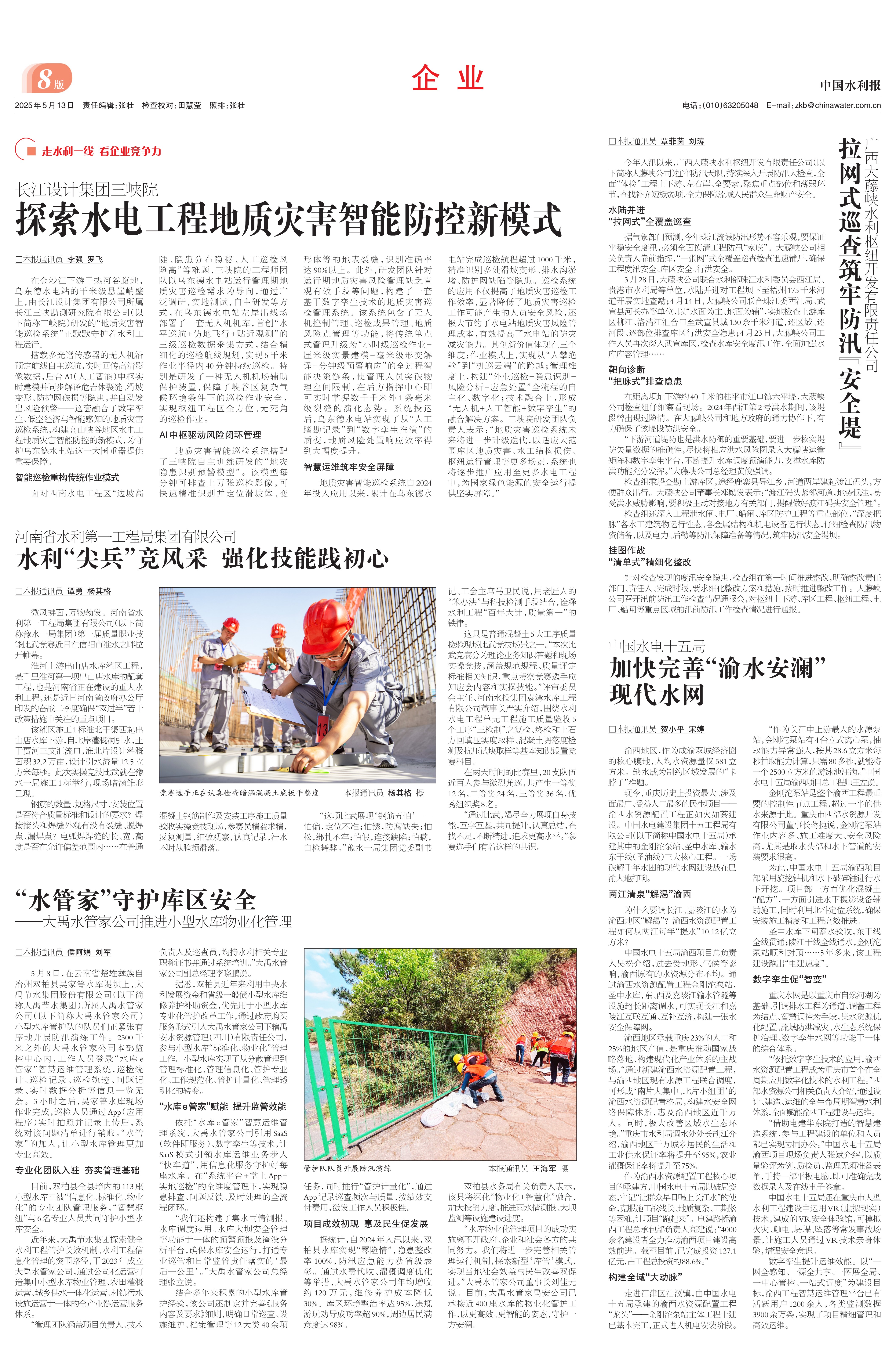 5月13日,《中國(guó)水利報(bào)》刊發(fā)《中國(guó)水電十五局:加快完善“渝水安瀾”現(xiàn)代水網(wǎng)》,文章圍繞聚焦水電十五局承建的重慶渝西水資源配置工程金剛沱泵站、圣中水庫(kù)、輸水東干線(圣油線)三大核心工程,從兩江清泉“解渴”渝西 、構(gòu)建全域“大動(dòng)脈”、數(shù)字孿生促“智變”三個(gè)部分,體現(xiàn)通過(guò)跨區(qū)域調(diào)水與智慧化建設(shè),破解渝西地區(qū)千年缺水困局,為區(qū)域高質(zhì)量發(fā)展注入“水動(dòng)力”。該項(xiàng)目作為成渝地區(qū)雙城經(jīng)濟(jì)圈建設(shè)的重點(diǎn)工程,將助力現(xiàn)代化產(chǎn)業(yè)體系發(fā)展,為區(qū)域高質(zhì)量發(fā)展注入持久動(dòng)力。